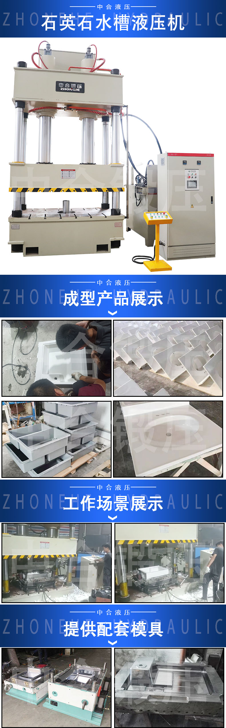 石英石水槽熱壓成型機(jī)屬于三梁四柱液壓機(jī):