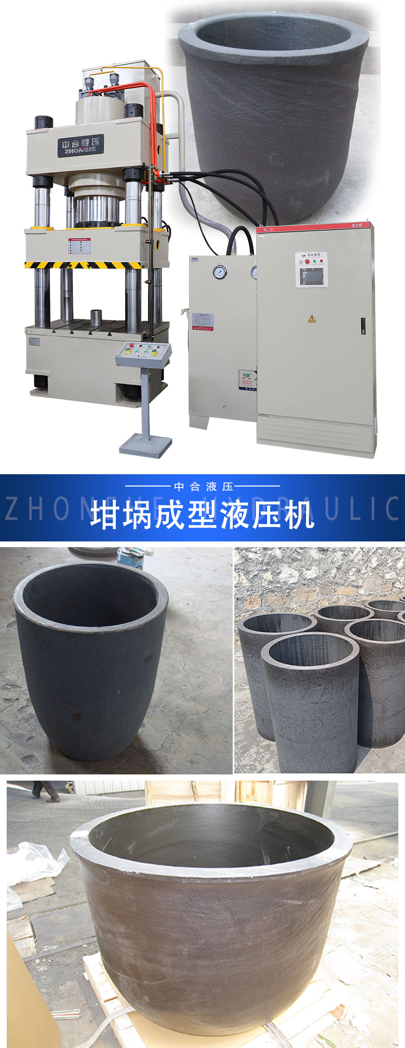 坩堝成型液壓機(jī)滿足耐火材料成型工藝的多種要求,并使裝料一成型一出磚整個(gè)生產(chǎn)過程全部自動(dòng)化。